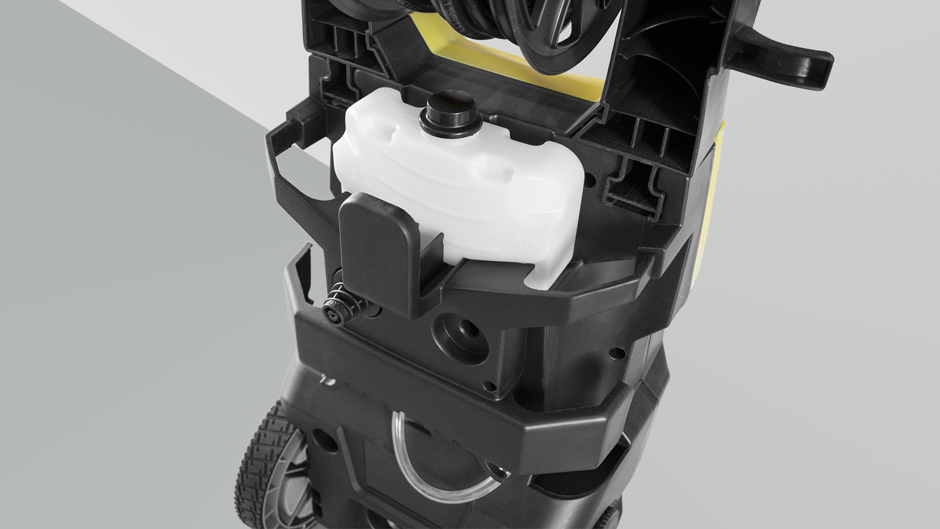 Zintegrowany zbiornik na detergent, bezpośrednie zasysanie detergentu ze zbiornika wbudowanego w celu rozproszenia środka chemicznego przy niskim ciśnieniu.
